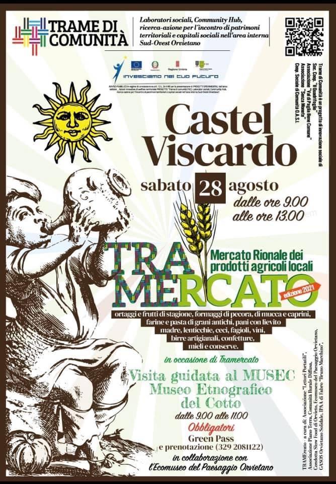 Tramercato รจ il mercato rionale dei piccoli produttori agricoli orvietani: ortaggi, frutta di stagione, formaggi, vino, olio e artigianato a Km zero. Il 21 agosto 2021 ha fatto tappa a Castel Viscardo, con una visita guidata al Museo del Cotto